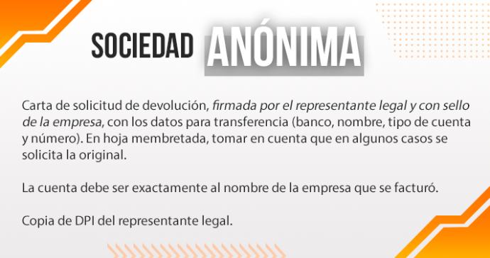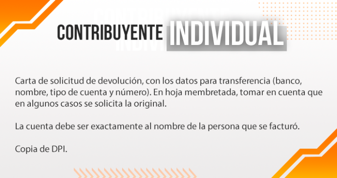 Toda devolución se realiza mediante transferencia bancaria a nombre del titular de la factura. Para montos iguales o superiores a Q50,000.00 la devolución se efectúa mediante cheque.