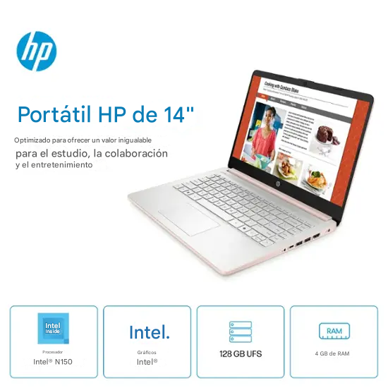 14-dq6015dxLaptop HP 14-DQ6015DX 14" Intel N150 4GB RAM 128GB UFS W11 Home Rosado Teclado Inglés
