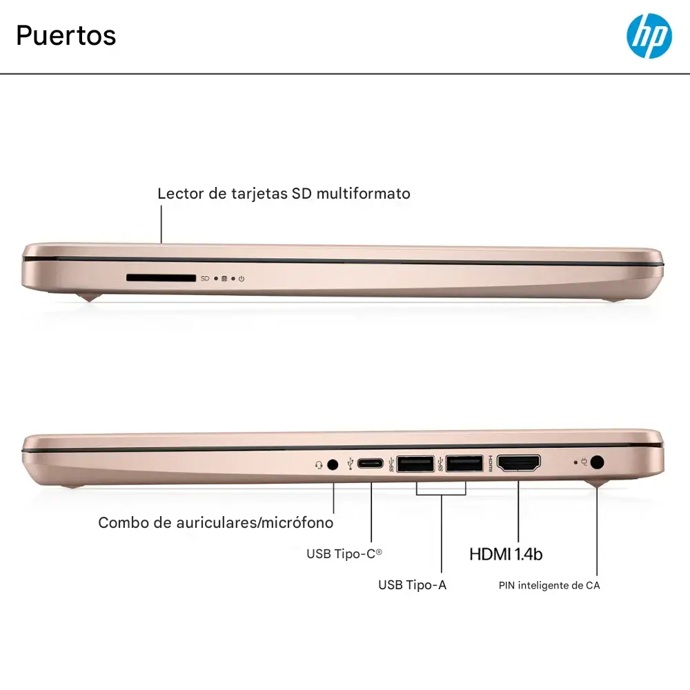 Laptop HP 14-DQ6015DX 14" Celeron N150 4GB RAM 128GB UFS W11S Home Rosado Teclado Inglés