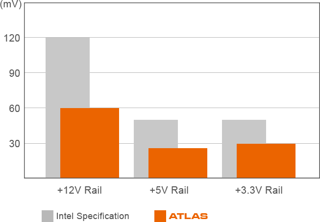 Los niveles de ondulación se mantienen constantemente bajos en todo el rango de carga, desde el 0% hasta el 100%. Esto garantiza un funcionamiento estable y protege el rendimiento de los componentes críticos para una funcionalidad prolongada y confiable.