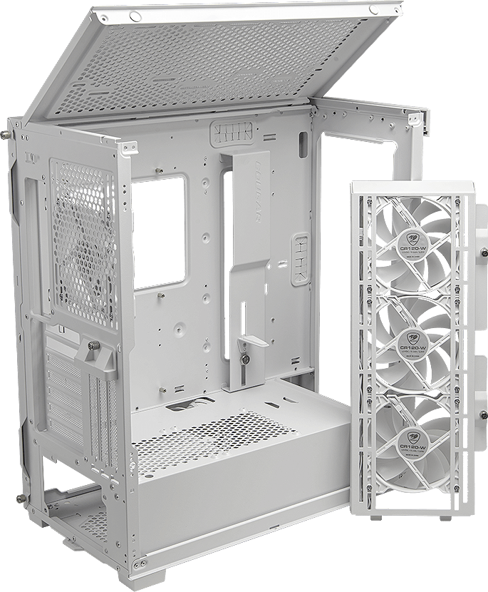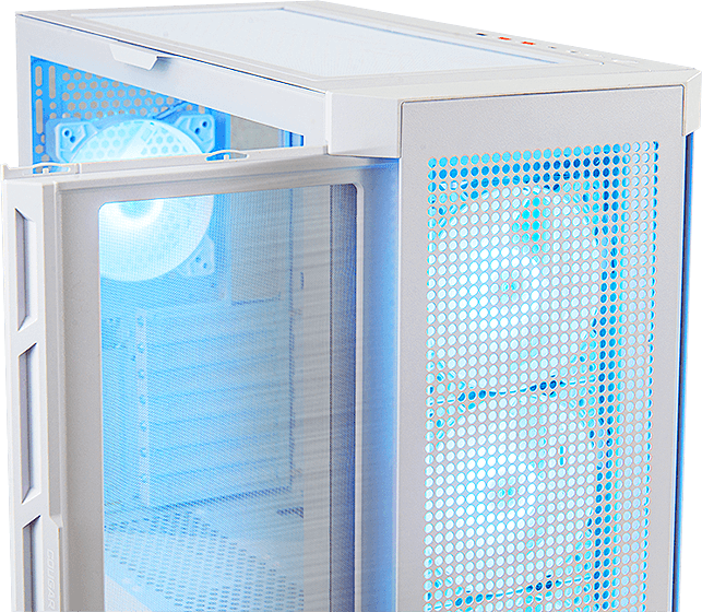 El panel superior removible y el soporte frontal removible ofrecen un acceso sin obstáculos al interior, brindándole un espacio extra grande que hace que ensamblar su equipo sea lo más fácil que jamás haya sido.