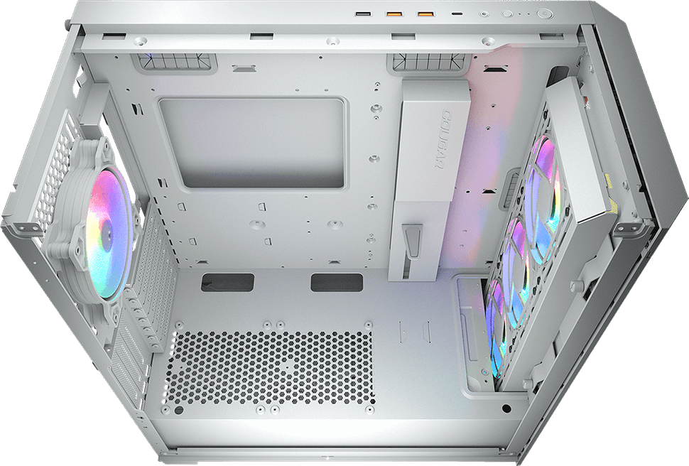 Equipado con cuatro ventiladores ARGB de 120 mm y un logotipo resaltado, Duoface Pro RGB le permite controlar una variedad de impresionantes efectos de iluminación con solo tocar un botón RGB dedicado. Además, el controlador LED incorporado es totalmente compatible con las conexiones ARGB de 5 V en las placas base, lo que permite una sincronización de iluminación perfecta en todo el sistema.