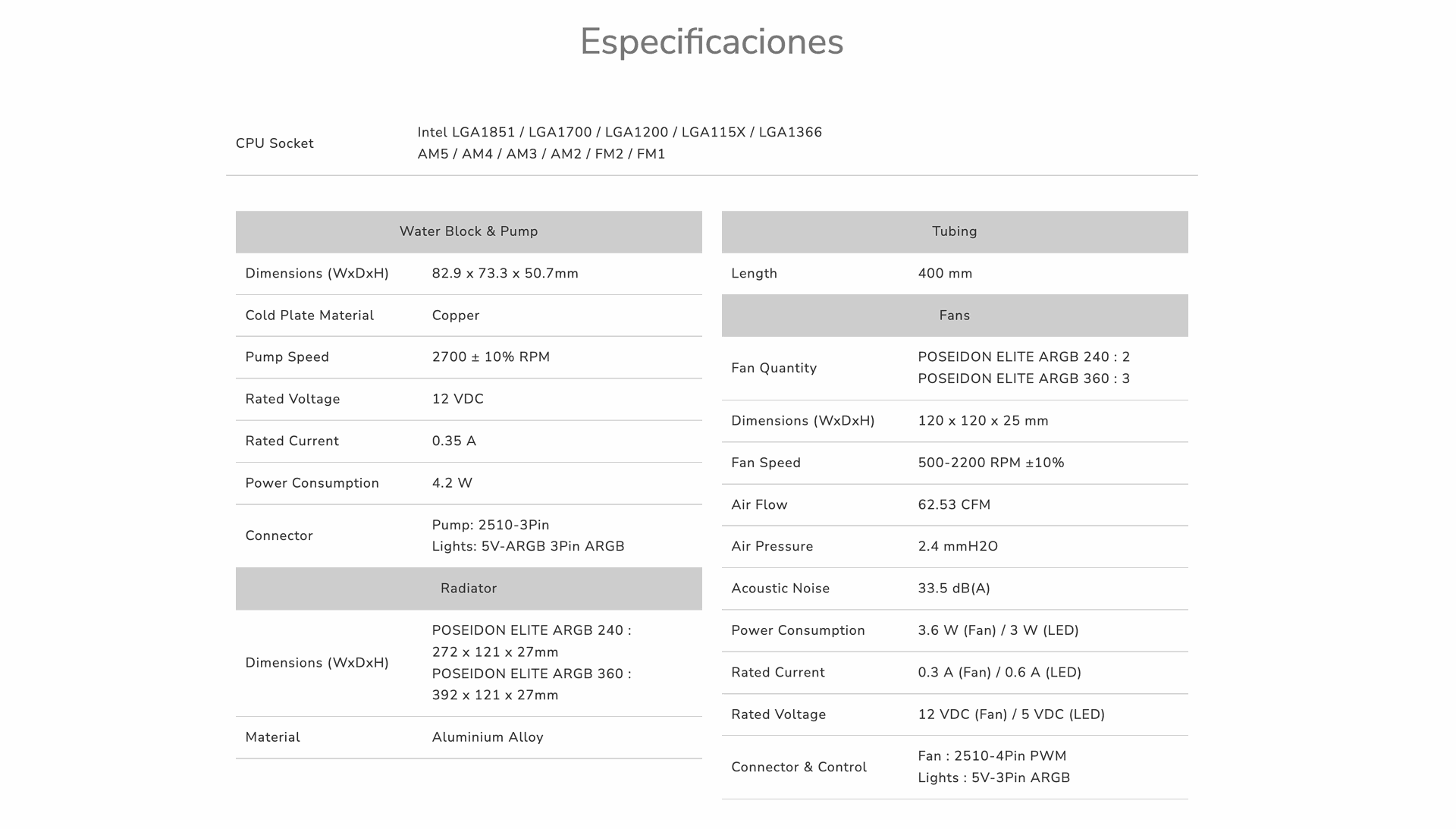 3MPSD240.0001Enfriador Líquido 240mm Cougar Poseidon Elite ARGB Negro