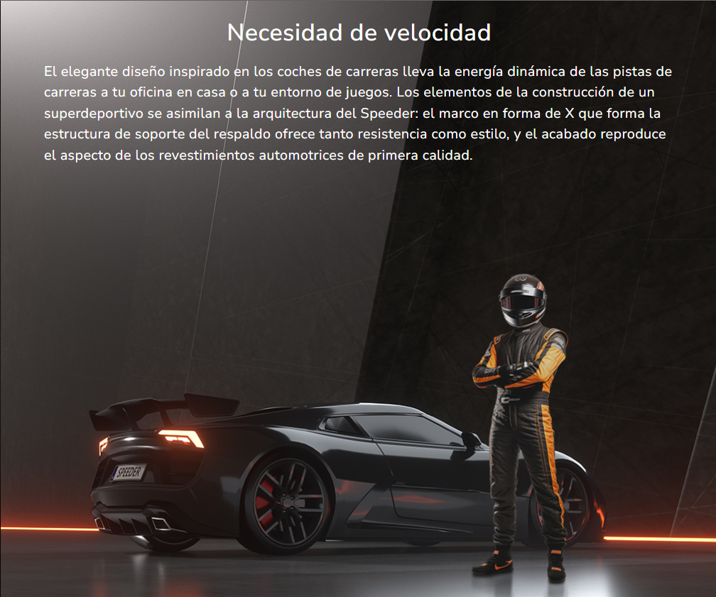 El respaldo se curva para adaptarse a los contornos naturales de la cintura, lo que mejora el soporte y la comodidad de la zona lumbar. El asiento en cascada se inclina hacia abajo para reducir la tensión y la fricción en la parte posterior de los muslos: esta característica alivia la presión de las rodillas y mejora la circulación sanguínea en las extremidades inferiores, lo que promueve una distribución uniforme del peso en todo el asiento gracias a su construcción contorneada.