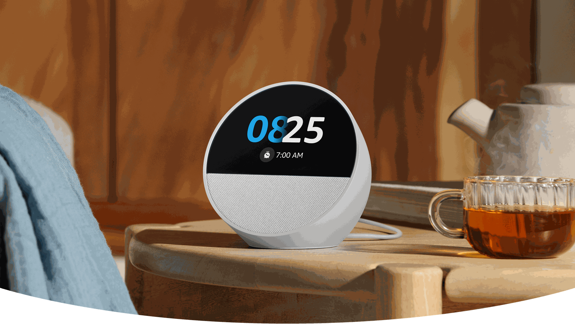 Personaliza tu Echo Spot eligiendo tu fondo de reloj y color de pantalla favoritos.