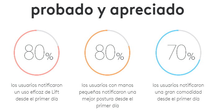 El ángulo óptimo de 57° de Lift posibilita lo que llamamos "posición de sujeción natural", que ejerce menos presión sobre la muñeca a lo largo del día y fomenta una postura más natural del brazo y la parte superior del cuerpo.