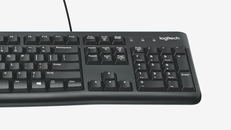 Este teclado de tamaño normal con sección numérica integrada facilita el ingreso de datos, los cálculos y la navegación. La barra espaciadora curvada y las teclas fáciles de leer proporcionan una experiencia confortable y familiar.