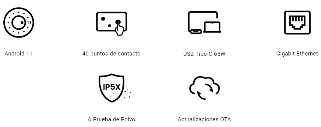- Pantalla interactiva, 40 puntos touch. Contraste: 1,200:1:00