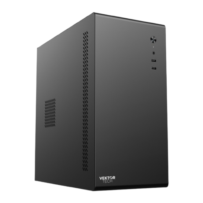El Case VektorTech A200 es una media torre compacta en formato Micro ATX, ideal para equipos de oficina, estudio o PCs de uso general. Su diseño sobrio y funcional permite montar configuraciones eficientes sin sacrificar espacio ni compatibilidad con componentes esenciales.