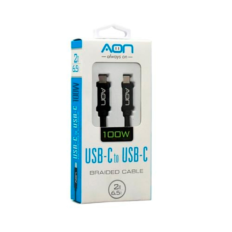 El cable USB-C a USB-C AON AO-CB-5017 de 2 metros en negro proporciona una conexión rápida y segura entre dispositivos compatibles. Con una velocidad de transferencia de hasta 5 Gbps y capacidad de carga de hasta 100W, es ideal para diversas aplicaciones.