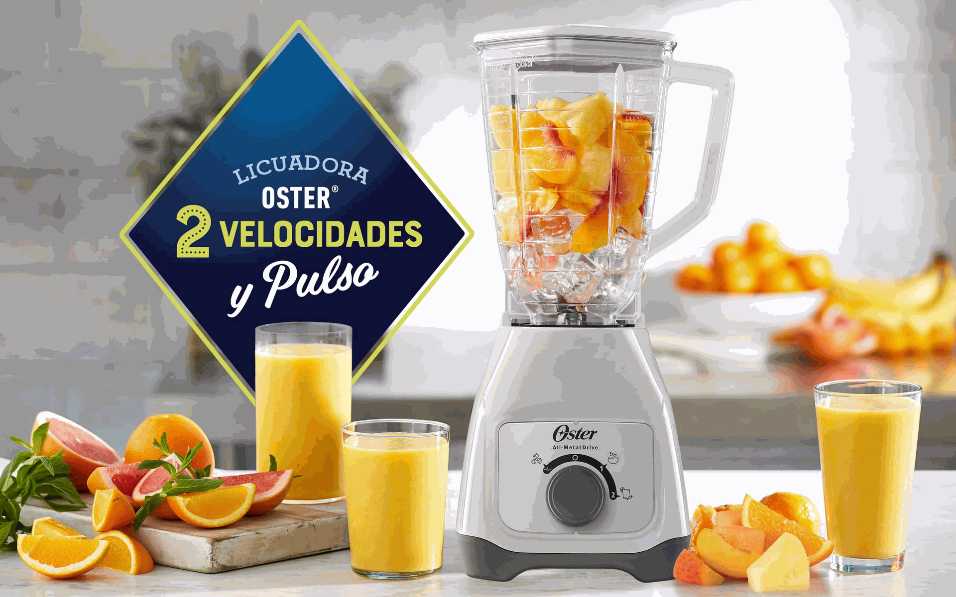La licuadora de perilla con 2 velocidades y pulso de Oster® te brinda practicidad y rendimiento. Su elegante diseño es duradero, potente, versátil y resistente.