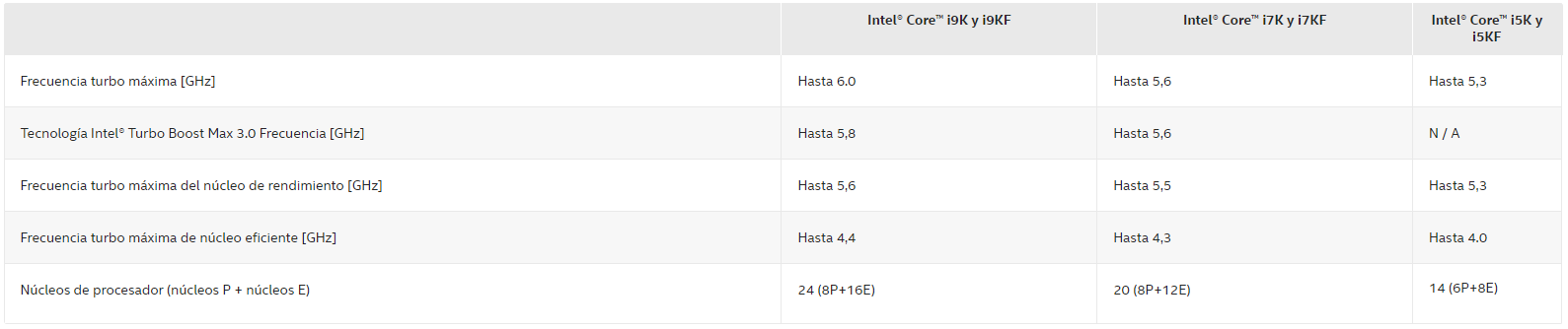 Los procesadores Intel Core de escritorio ofrecen una arquitectura híbrida de alto rendimiento que combina núcleos de alto rendimiento y eficientes en un solo procesador. Pueden tener hasta 24 núcleos y 32 hilos, con el modelo Intel Core i9 alcanzando velocidades de hasta 6.0 GHz. Además, cuentan con tecnologías avanzadas como Intel Dynamic Tuning, Turbo Boost Max 3.0 y Thermal Velocity Boost.Max 3.0, Intel Thermal Velocity Boost, Intel Adaptive Boost, entre otras.