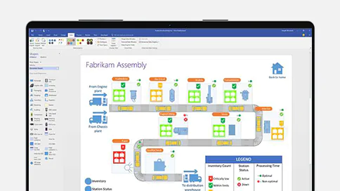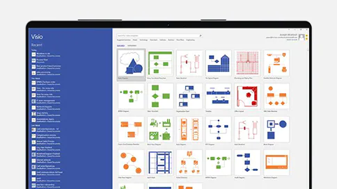 Usa formas modernas y plantillas modernas de forma fácil e intuitiva en una experiencia conocida de Office con Visio.