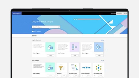 Empieza a crear diagramas de forma rápida con plantillas, una interfaz moderna y la experiencia que ya conoces de Office para la Web.