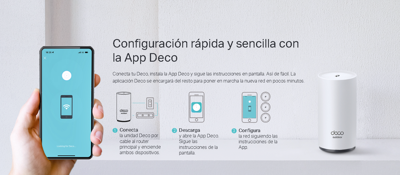 Deco X50-Outdoor está herméticamente cerrado para resistir en exteriores en condiciones de lluvia, polvo y temperaturas extremas.  Así garantiza una señal Wi-Fi potente al aire libre. La alimentación por adaptador de corriente o cable PoE permite una fácil instalación.