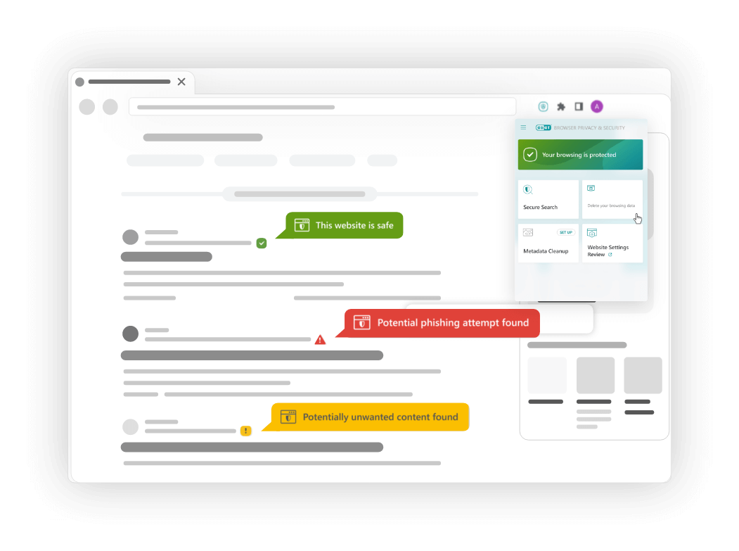 Modo de navegación seguro y extensión de privacidad para mantener a salvo sus datos al comprar, realizar operaciones bancarias y socializar en línea.