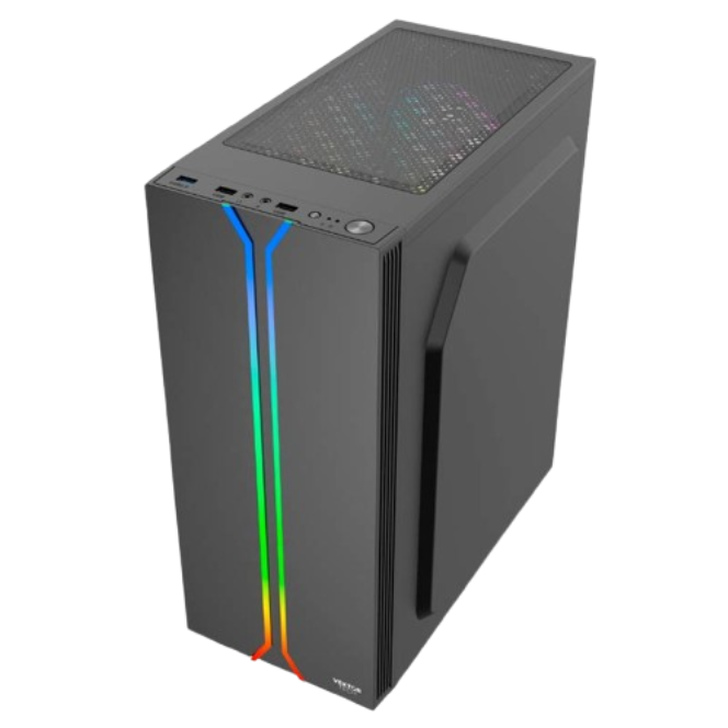El Case Gaming VektorTech EZQ1 combina diseño moderno con funcionalidad, ideal para armar una PC compacta con estilo. Su panel lateral de vidrio templado permite mostrar los componentes internos, mientras que su estructura Micro ATX asegura compatibilidad con configuraciones equilibradas para gaming o trabajo.