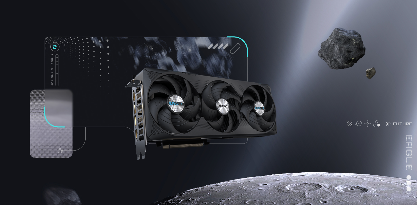 El diseño frontal integra con audacia elementos aeroespaciales y de ciencia ficción, mostrando claramente el estilo distintivo de EALGE, a la vez que mantiene una estética coherente con la línea de placas base. Esto garantiza un lenguaje de diseño unificado y refuerza la identidad de la familia de productos.