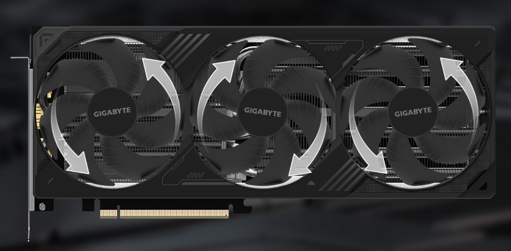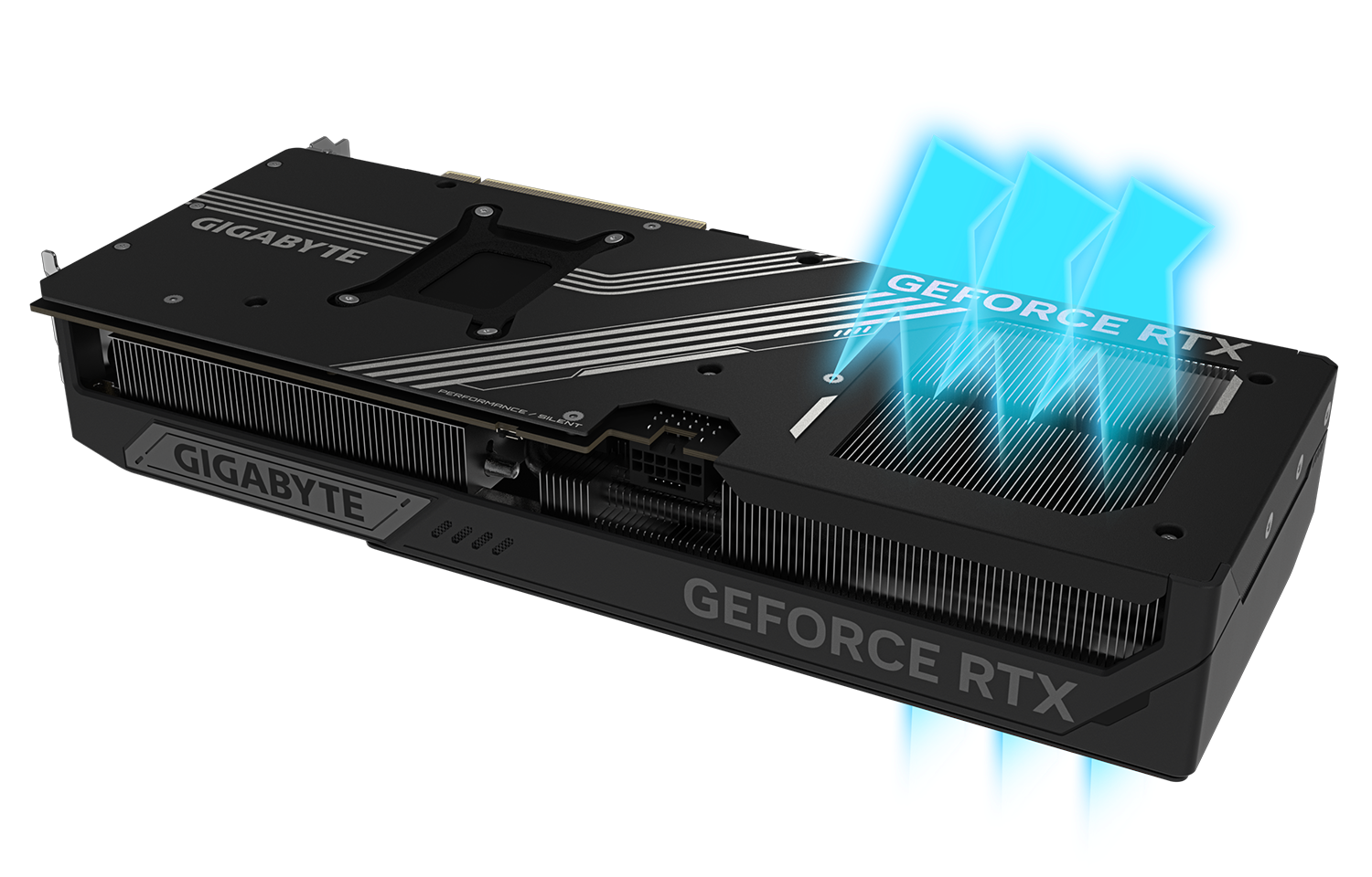 El sistema de refrigeración WINDFORCE ofrece un rendimiento térmico excepcional gracias a una combinación de tecnologías de vanguardia. Incorpora gel conductor térmico de grado servidor, innovadores ventiladores Hawk con giro alterno, tubos de calor de cobre compuesto, una gran cámara de vapor, ventiladores activos 3D y refrigeración por pantalla.
