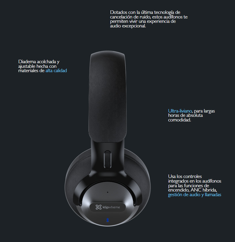 Audífonos tipo Headset Klip Xtreme ANC Premium Bluetooth con Micrófono Azul