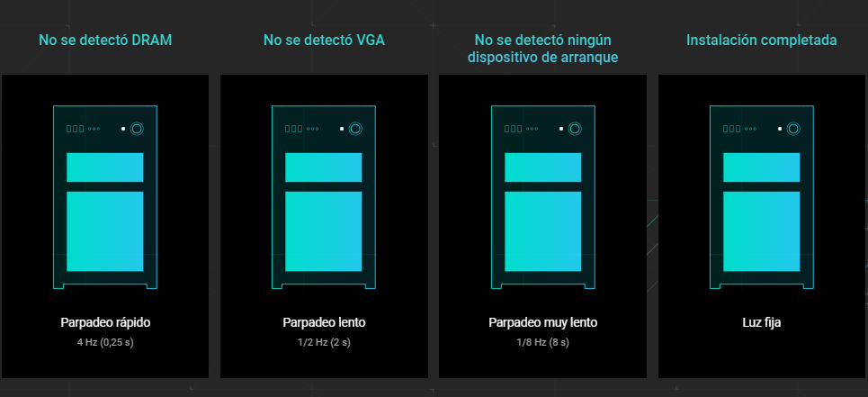 La pantalla Q-LED Core produce patrones de luz mediante el LED de encendido durante la autoprueba de encendido (POST) que puede ayudar a los usuarios a solucionar posibles problemas.