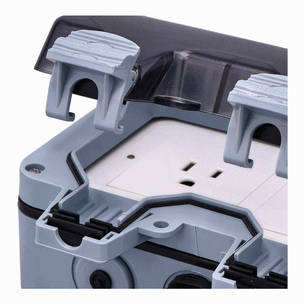 Multitoma inteligente para exteriores de 2 salidas de voltaje con polo a tierra para empotrar:Cubierta protectora para cada salida, Diseño robusto y resistente, Controle de forma remota, programe tiempos de encendido o apagado, Automatización con otros dispositivos, Aplicación compatible con dispositivos IOS y Android, Compatible con asistentes de voz, Para uso interior/Exterior