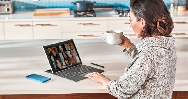 Activa el video para que sea más personal - Comparte contenido y colabora fácilmente durante tu reunión gracias a la integración perfecta con Microsoft 365.