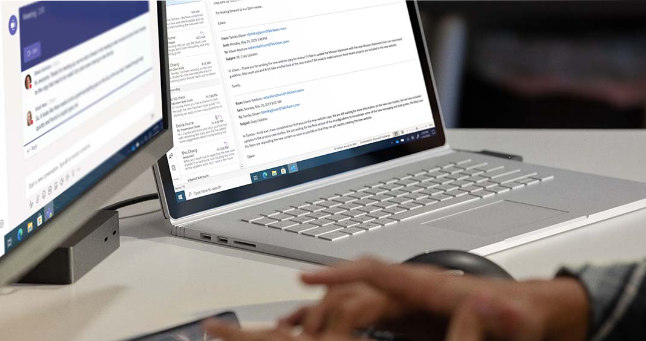 Comparte contenido al alcance de tu mano y colabora - Captura audio, video y actividades de uso compartido de pantalla mediante la grabación de tus reuniones en Teams. La transcripción automática te permite reproducir las reuniones y buscar asuntos de debate importantes en la transcripción.